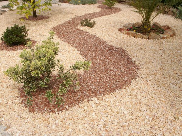 La Grava Rosa tiene un color muy natural y elegante, se puede mezclar con multitud de áridos, como las gravas y cantos rodados rojos, negros, blancos, volcánicos, etc.
